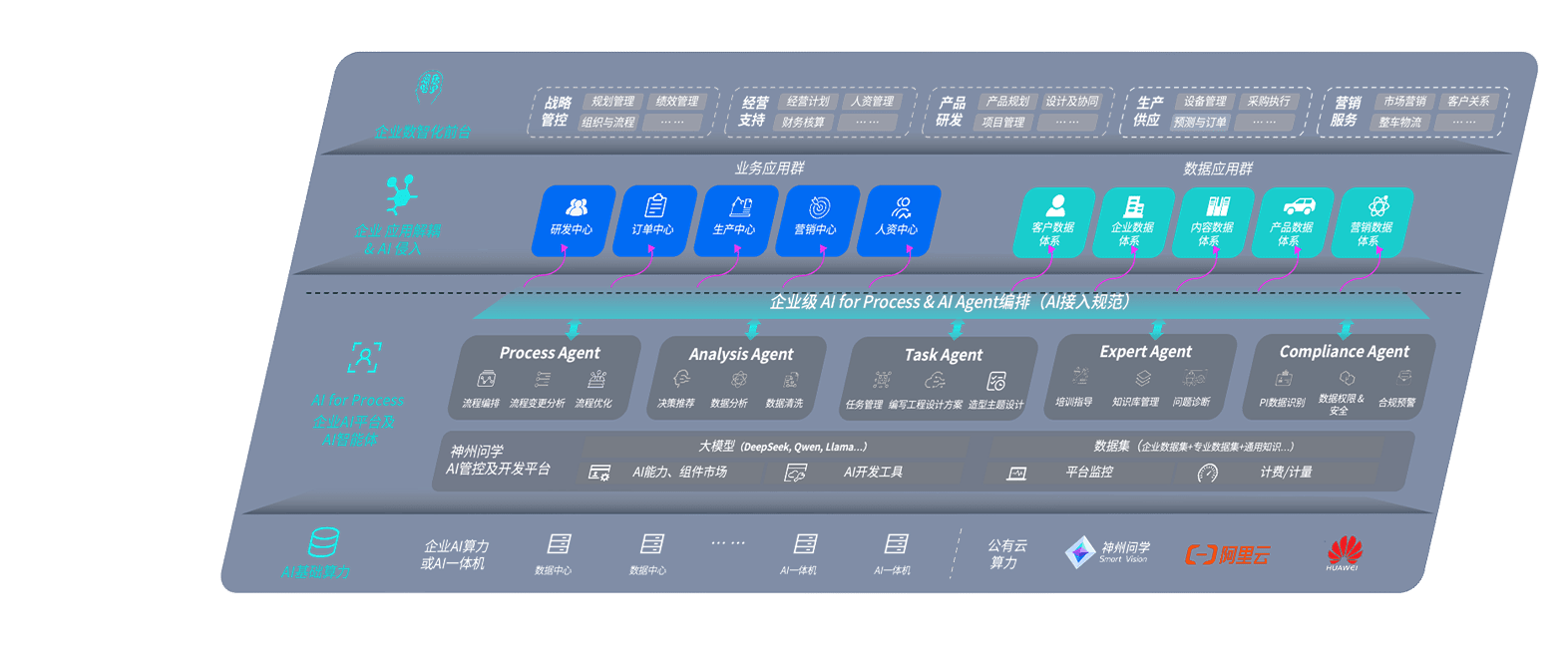端到端的一站式AI工作空间深度融合了从企业战略规划到日常经营的全流程业务板块,,,,定向解决车企内部领域多、、、部门多、、、链条长、、、、场景碎片化等难题,,,支持车企快速构建以AI为核心的生产力写作体系,,实现任务执行与AI能力的无缝集成与交互